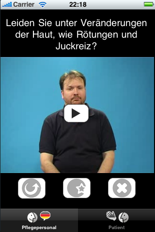 Beachten Sie bitte: Für die Nutzung der Gebärdensprachevideos ist das iPhone OS 3.1 oder spätere Versionen nötig.